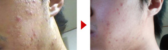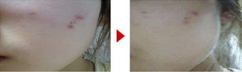 炎症を起こしていた二キビも、"ミツバチ毒"の効果で跡になることもなくキレイに。