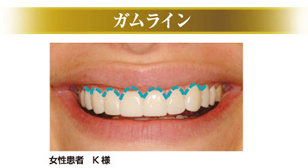 歯ぐきと歯の境目のラインが左右対称の曲線ほど、 その歯は理想的なバランスを持っていると言われています。