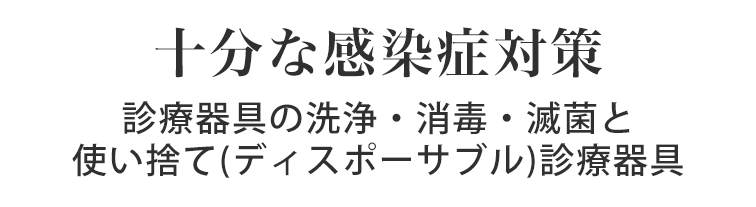 また当院では、患者様ごとのゴム手袋など、使い捨て(ディスポーザブル)の診察器具を使用しております。